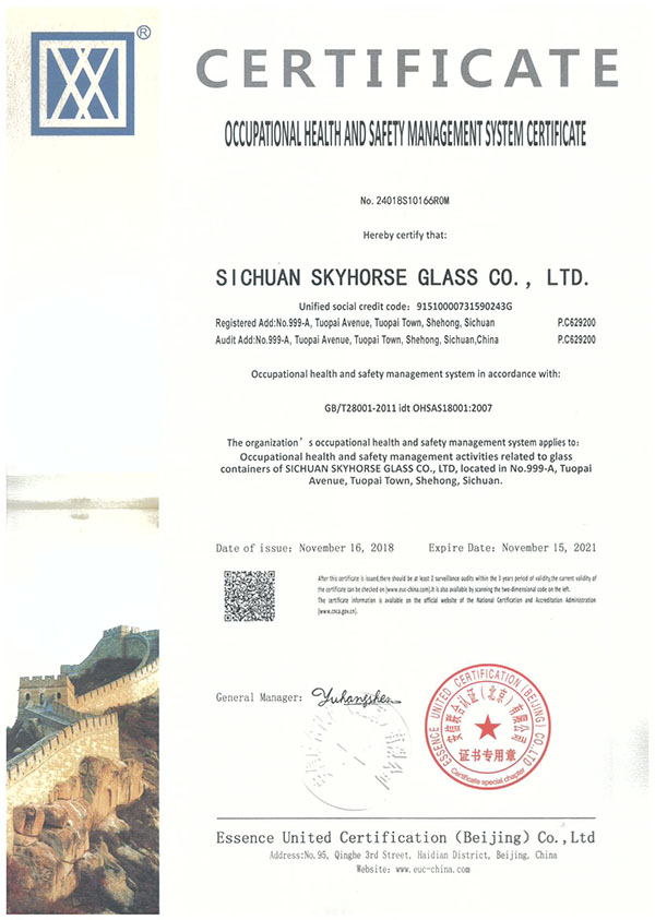 職業(yè)健康安全管理體系認(rèn)證證書-英文